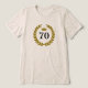 A Elegante Dourada Laurel Wreath Crown 70 de Aniversário, Camisa Tripla. O design tem uma coroa de louros em torno do número da idade e uma coroa acima do nome personalizado. Adicione a sua idade.