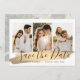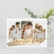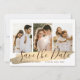 Elegante Dourada 4 Foto Para Salvar O Convite De Casamento. Na moda e moderno que podem combinar qualquer esquema de cores com um estilo boêmico. Modelo editável. Basta carregar suas fotos para mudar as imagens. Verifique a coleção para ver outros designs e artigos de papelaria, sinal de boas-vindas e decor.