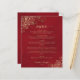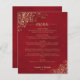 Esses lindos menus de casamento são simples, elegantes e na moda, enquanto ainda são amigáveis e baratos. Eles apresentam um design elegante e glamouroso com ouro de bobinas de folhas falsas e espirais, e uma caligrafia de script em um fundo vermelho marmoreado.