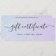 Estes certificados de presentes impressionantes apresentam um fundo pastel simples, mas elegante, com tons de azul e rosa em cintilação de imitação e caligrafia moderna moderna moderna. Um olhar jovem e moderno que é perfeito para qualquer pessoa que trabalhe com beleza, como dono de spa ou salão, técnicos de unhas, maquiadores, criadores de conteúdo e muito mais.