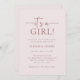 Prepare-se para dar as boas vindas ao seu pequeno no mundo com este Elegante É um Convite para Chás de fraldas de Menina que apresenta texto empoeirado de rosa num fundo cor-de-rosa pincelado com um roteiro elegante de caligrafia, perfeito para dar o tom para uma celebração sofisticada!