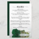 Esses lindos menus de casamento são simples, elegantes e na moda, enquanto ainda são amigáveis e baratos. Eles apresentam uma design elegante e glamourosa com um título de caligrafia e um rosa verde-esmeralda solteiro refletindo em uma piscina de água com ondas e ondulações. A parte de trás é uma linda cor roxa marmoreada com os nomes do casal e a data do casamento na parte de baixo.