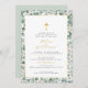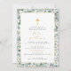 Elegante Eucalyptus Greenery Baptism Convite | Modelo de Cerimônia Religiosa de Watercolor. Convide os entes queridos para celebrar o dia sagrado da sua criança com este Convite Elegante de Batismo Eucalyptus Greenery. Apresentando verde aquoso macio e um sotaque cruzado clássico, este modelo personalizável é perfeito para cerimônias de batismo cristão, católico e protestante. Personalize com o nome do seu filho, a data do batismo, a localização da cerimônia e os detalhes de RSVP. Ideal para meninos, meninas ou celebrações neutras em relação ao gênero. Disponível como convite impresso ou download instantâneo para ajustado das suas necessidades de planejamento. Clique em "Personalizar este modelo" para começar a personalizar sua manutenção hoje mesmo!