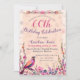 Belo convite de aniversário com um pássaro decorativo e flores no estilo da casa de campo em tons de roxo rosa e pêssego. A combinação da cor da água em negrito com a pastel dá um resultado atraente. Todo texto pode ser totalmente personalizado.