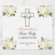 Celebre a Primeira Comunhão da sua filha com amigos e familiares e ofereça champanhe ou vinho espumante a eles com este bonito rosa floral branco e a cruz da Santa rua do champanhe da Comunidade. Este rótulo de champanhe para a primeira comunhão sagrada apresenta uma bela cruz com uma estrutura floral contra um simples fundo branco.