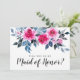 Elegante Você será meu design de placa de Madrinha de casamento com rosas cor-de-água rosa brilhante, folhagem azul e cinza em um fundo branco.