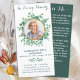 Simpatia moderna de Eucalyptus Cartões de oração funerários 4x8 favoritos. Este simples, mas elegante cartão de oração memorial apresenta um moderno design de eucalipto verde. Frente "In Loving Memory" Personalize este cartão de oração do funeral memorial com a foto, o nome e as datas de seus entes queridos e o sentimento. Poema 'Miss Me', que pode ser personalizado, por favor, contacte se quiser uma design com um poema específico que não. Este cartão de oração memorável será um guardião precioso, para os serviços funerários e para a celebração da vida. COPYRIGHT © 2020 Judy Burrows, Black Dog Art - Todos Os Direitos Reservados. Elegante Greenery Memorial Foto Funeral Prayer