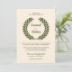 Convide seus convidados com este elegante convite de casamento, com uma bela coroa verde de louros contra um fundo bege. Basta adicionar os detalhes do seu evento neste modelo fácil de usar para torná-lo um convite de tipo único.
