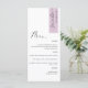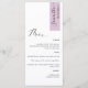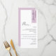 Porquê gastar cartões de lugar e cartões de menu quando pode ter um Menu elegante All-in-one personalizado com o nome de cada convidado! Design contemporâneo, simples e elegante com uma bela caligrafia manuscrita moderna. A faixa no canto superior direito está em um tom púrpura pastel lilac atraente com o nome de convidado em preto. De volta no mesmo tom pastel lilás que a faixa. Capacidade de alterar ambas, a cor da faixa ou a parte traseira selecionando "personalizar ainda mais". NOTA: adicione um nome de convidado a cada menu, adicione o menu ao carrinho de compro; depois volte ao menu, adicione um segundo nome de convidado e adicione o menu ao carrinho de compro... continue com este processo com todos os nomes de convidado na sua lista. Para primeiros nomes de convidado curtos, adicione com a barra de espaço do teclado alguns "espaços" vazios antes do nome, para centralizá-lo melhor. Este design está disponível em uma variedade de opções de cores. Parte da nossa coleção "Joyful Floral" com muitos produtos de coordenação disponíveis. Visite a coleção por categoria nesta página de produtos ou navegue na coleção inteira num único olhar em: https://www.zazzle.com/collections/joyful_pastel_floral_collection-119953493901910528