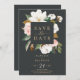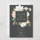 Este elegante preto magnólia salva a carteira é perfeito para um casamento clássico moderno. O moody floral design apresenta uma cor d'água, cor rosa pincelada, impressionantes flores brancas de magnólia e algodão com ouro e folhas verdes num arranjo luxuoso sobre fundo escuro.