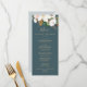 Este elegante cartão de janto de noivado de magnólia e branco é perfeito para um casamento clássico. O moody floral design apresenta uma cor d'água, cor rosa pincelada, impressionantes flores brancas de magnólia e algodão com ouro e folhas verdes num arranjo luxuoso sobre fundo lacrimogêneo. Este menu pode ser usado para recepção de casamento, janto de ensaio ou qualquer evento.