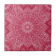 Um belo azulejo de cerâmica magenta mandala boêmica apresenta um lugar elegante que parece um medalhão de design com flores, corações e folhas caprichosas. Azulejo de cerâmica design florescente com cores vermelho e branco rosado e brilhante é adorável para decoração domiciliar no estilo boho. É um modelo, então você pode mudar a cor de fundo para outra que vai combinar mais com o interior da sala.