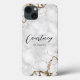 Caso Elegante do iPhone 13 com fundo de dourado mármore e falso e fontes de caligrafia modernas para seu nome ou iniciais. O cobrir telefônico inclui espaço para adicionar seu nome ou monograma, e você pode até adicionar seu logotipo se usar esta capa de telefone para sua empresa. Este moderno design de cobrir para iPhone fará com que seu telefone pareça chic e tendências extras.