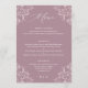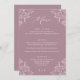 Elegante Mauve Wedding Menu: Este menu de luxo é perfeito para um casamento elegante e clássico. Apresenta uma fronteira de ornamentado vintage sobre um fundo mauve emparelhado com caligrafia moderna e elegante. Esta mauve é uma cor rosada roxa ou rosa empoeirada. Veja todos os produtos correspondentes abaixo.