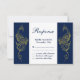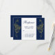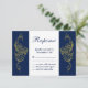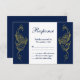 Este elegante cartão de resposta ao casamento inspirado no henna é acentuado com esboços à mão, pavões dourados num fundo azul e branco marinho, fazer este mehndi design perfeito para o casamento índio moderno ou tradicional. O Convite de casamento de Peacock do Elegante coordenador Mehndi - Marinho & Branco, está disponível; no entanto, se forem necessários itens adicionais, contacte-nos em prettyfancyinvites@gmail.com com o seu pedido.