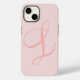 Crie sua própria na moda, capas de iphone moderna e proteja seu telefone com estilo! Este caso apresenta uma fonte de script de estilo de caligrafia elegante na moda grande inicial em rosa-pincel em um fundo de pincel mais leve. Selecione nas caixas suspensas o estilo fino ou duro de capas de iphone e o seu iPhone modelo facilmente.