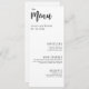 Menu folha única, tamanho: 10,16 x 22,86 cm, papel: Semi-brilho Básico