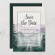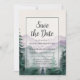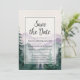 Anuncie sua data de casamento em estilo com esta elegante e inspirada na natureza. O belo design de aquarela apresenta uma paisagem de montanha nebulosa e uma floresta verde esbujada. A caligrafia moderna acrescenta um toque de sofisticação. Personalize com seus nomes e data de casamento para um anúncio personalizado.