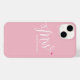 Apresentando o presente perfeito de chá de panela ou aniversário - um elegante caso personalizado do iPhone 14 que é na moda e funcional. Feita com um design preto elegante, este caso personalizado apresenta a elegante caligrafia de "Sra." e o futuro sobrenome da noiva, acompanhada por um coração rosa e bonito.