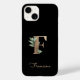 A capa de telefone preta elegante apresenta um monograma botânico dourado no centro.