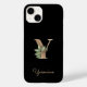A capa de telefone preta elegante apresenta um monograma botânico dourado no centro.