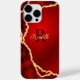 Esta capa de telefone cinza na moda com um design preto e vermelho em estilo agate com brilho de ouro falso é fácil de personalizar com um nome e uma inicial.