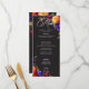 Abraçar a beleza opulente de uma colheita floral de outono com o nosso cardápio captivante de casamento. Um fundo preto dramático, mas macio, proporciona a canvas perfeita para um buquê surpreendentemente realista. Imagine uma vibrante explosão de cor, apresentando rosas em laranja e magenta escura, com pequenas flores magenta cor-de-rosa e violetas roxas e ao lado de mães de pêssego e outros florais vibrantes. Folhagem verde escura e escura completa o arranjo, adicionando um toque de elegância natural. Este design cativante é perfeito para qualquer estação, refletindo a intensidade apaixonada da sua história de amor. Um elegante script vintage anuncia seu menu, enquanto seus detalhes são mostrados em uma fonte moderna, garantindo que eles se destacam maravilhosamente contra o cenário dramático. Esta design encantadora cria um cardápio verdadeiramente inesquecível para celebrar o seu dia especial. Criado pela imprensa simplesmente de farmácia.