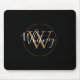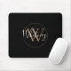 Elegante mouse pad preto e dourado com monograma de nome em script chic. Você pode personalizar o nome, inicial do monograma e personalizar a fonte e as cores para criar seu próprio design exclusivo. Criado por Thisisnotme©