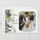Cartão com fotos Elegante Obrigado, apresentando sua própria foto de casamento emoldurada por um design de música romântica com o tema guitarra e teclado e notas musicais de ouro estilizadas com rosas.