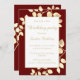 Elegantes convites de aniversário marrom-terra com folhas de ouro bege para um aniversário chique e clássico.