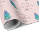 Elegante Papel de Presente de Natal Árvore Cor-de-Rosa Personalizado | Árvore de Natal moderna e bonita com presentes coloridos. Você pode alterar a imagem da Árvore e todo o texto.