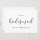 Um cartão de presente simples e minimalista para escrever uma mensagem pessoal e sincera para a sua dama de honra no dia do seu casamento. Totalmente personalizável com suas cores favoritas (texto e fundo). Você pode adicionar uma mensagem no verso ou deixá-la vazio se preferir escrever manualmente a mensagem mais tarde.