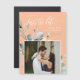 Isto salva a data em que o cartão magnético apresenta elegantes folhas de folhagem verde-aquática e lindas caligrafias e simples fontes de tipografia serif com uma fotografia quadrada sobre um fundo de pêssego para um olhar limpo minimalista e moderno, que é uma bela maneira de informar sobre seu casamento ou elopemento que está por vir. Apenas personalize o texto e adicione um toque pessoal com uma bela foto do casal. Note-se que a elegante caligrafia dos termos "Salvar a data" e "convite formal para seguir", juntamente com a folha verde de cor-d-água, o eucalipto de folhas e outros trabalho de arte gráficos e elementos não podem ser editados, suprimidos ou movidos. Eles estão consertados.