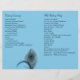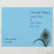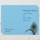 Penas de pavão elegantes decoram este programa de casamento em um fundo de turquesa. É impressa no papel leve do folheto para que seja fácil dobrar ao meio.