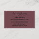 Mostre seus serviços profissionais com esta ameixa e cartão de visita prateada. Você pode mudar facilmente todas as informações para suas informações selecionando "personalizar este modelo" no lado direito da página e digitando-a nos campos modelo. Se você quiser assistência, ou tiver outras perguntas, por favor, não hesite em entrar em contato comigo em julieartwork4@gmail.com ou através da mensagem Zazzle, e eu ficaria feliz em fazer isso! Se você gosta deste design, e gostaria que eu design um cartão de visita ou outros produtos Zazzle, especificamente para atender às suas necessidades, por favor, entre em contato comigo também. Obrigados para checar JulieArtwork Store e ter um dia maravilhoso hoje!
