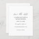 ** SATIN PAPER É PAPEL FINO. ATUALIZE O PAPEL PARA OBTER UM PAPEL MAIS ESPESADO. TEM UMA OPÇÃO PARA ENVELOPES. *** Economize dinheiro em convites formais com este convite menor que tem uma opção para envelopes. Prepare seus convidados para o maravilhoso casamento com seus Cartões salve a data Elegantes Pretos e Brancos. Quer uma versão maior? Confira a coleção Salvar Data para cartões: https://www.zazzle.com/collections/save_the_date_collection_2-119350686298077869?rf=238937196885903396