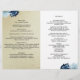 Elegante programa de quinceañera azul apresentando belas flores pintadas à mão em aquarela em uma variedade de tons azuis com detalhes em dourado. Uso de detalhes de caligrafia moderna. Personalize o programa em ambos os lados, adicionando quaisquer detalhes ou mensagens que desejar. Também disponível em espanhol. NOTA IMPORTANTE: este programa chegará plano e requer dobragem no meio para montagem. O valor padrão do programa é recomendado. Para uma dobra limpa, você pode usar uma ferramenta de dobragem óssea barata, disponível na maioria das lojas de artesanato. Convite coordenado disponível. Parte da nossa coleção "Tema Azul Celestial e Dourado Elegante" com uma variedade de produtos coordenados disponíveis.