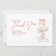 Envie seus agradecimentos com estilo com este encantador cartão de agradecimento de festa de noivado - apresentando um laço de cetim branco cremoso e um copo cintilante de prosecco rosé, é a mistura perfeita de elegância e diversão!