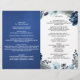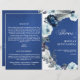 Programa Elegante quinceañera, com belas cores pintadas manualmente, em vários tons azuis, e detalhes de folhas, numa mistura de tons marinhos e tons azuis reais. Utilização de detalhes caligráficos modernos. Personalize o programa em ambos os lados, adicionando todos os detalhes ou mensagens desejados. Também disponível em espanhol. NOTA IMPORTANTE: este programa chegará plano e requer a dobradura no meio para ser montado. O programa de valor padrão é recomendado. Para uma dobra limpa, você pode usar uma ferramenta de pasta de osso barata, disponível na maioria das lojas de artesanatos. Convite de coordenação disponível. Parte da nossa coleção "Elegante Blue Watercolor Floral Quinceañera" com uma variedade de produtos coordenadores disponíveis.