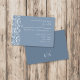 Cartão de resposta de casamento em azul poeira elegante com um design de filigrana moderno e tipografia limpa. Perfeito para casamentos, chás de noiva, jantares de ensaio e celebrações formais. Personalize facilmente nomes, datas e texto para combinar com o tema do seu casamento e criar papelaria coesa que seus convidados vão amar.