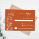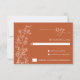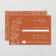 Confirmação de Presença de Casamento Vintage Floral Terracota Elegante. Este convite tem um estilo suave e elegante com um fundo terracota e flores brancas delicadas que transmitem calma e intemporalidade. As fontes misturam serif clássico com escrita fluida, dando um equilíbrio entre formalidade e calor. Ilustrações florais brancas delicadas ao longo da lateral esquerda adicionam um toque de capricho e charme inspirado na natureza. No geral, o design parece romântico, mas discreto, perfeito para um casamento moderno, mas tradicional.