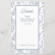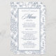 Elegante poeirento rosa de vintagem azul floral padrão floral em um roteiro de caligrafia branco no menu de casamento modelo modelo.