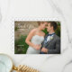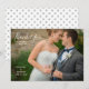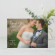 Este agradecimento de casamento apresenta uma moldura que preenche a frente do cartão. O texto com estilo manuscrito na moda é usado para as palavras "Obrigado". O texto personalizado permite que você adicione uma mensagem, os nomes dos noivos e a data do casamento.
