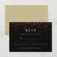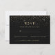 Este elegante RSVP preto com brilho dourado é perfeito para qualquer ocasião. O design apresenta um belo elemento de brilho dourado em um fundo preto para embelezar seu evento.