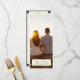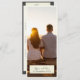 Celebre seu dia especial com nosso belo cardápio de casamento rústico, projetado para se adequar à nossa suíte de convite para casamento rústico Elegante. Este menu apresenta uma foto personalizável na frente, rodeada por uma borda amarela clara que cria um efeito branco envelhecido. Um encantador retângulo em forma de fita no centro inferior da foto contém os nomes do casal em uma letra elegante e a data de seu casamento em uma letra estilo máquina de escrever antiga. No verso, um fundo escuro complementa um retângulo amarelo claro que contém todos os menus de casamento na fonte da máquina de escrever. O design da fita com o título "Menu" aparece na parte superior deste retângulo, criando uma ilusão encantadora de que a fita está segurando o papel com as informações em um conselho rústico.