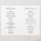 Elegante programa de casamento orçamentário dobrado com um simples design com cor d'água pintada em verde de eucalipto verde no canto superior esquerdo e canto inferior direito. Estes programas de casamento botânico apressados com uma reviravolta moderna são perfeitos para um casamento de primavera ou verão.