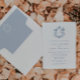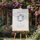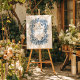 Cartão de Resposta de Casamento com Crista Floral Azul Elegante e Monograma