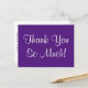 Este cartão postal de agradecimento elegante e sofisticado apresenta a mensagem "Muito Obrigado!" na frente, juntamente com uma mensagem personalizável no verso. Poderia ser usado para mostrar apreço a alguém que fez algo especial.
