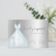 Cartões de RSVP de Quinceanera elegantes apresentam vestido azul gelo aquarela com detalhes de brilho prateado falso e fundo, ótimo para festa de aniversário de 15 anos.