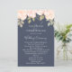 Fundo azul empoeirado e rosa de cor d'água, programa de casamento de ordem de serviço com modelo de festa de casamento. Um programa romântico botânico para destacar sua cerimônia de casamento. Este design apresenta elegante paisagem verde-aquática floral, simples roteiro de caligrafia foliar, primavera no outono de Verão, ordem de serviço de folhas botânicas, blush botânico clássico de folhagem natural, flores de tipografia minimalistas, uma festa de noiva minimalista, com pénia chica única primavera, uma peônia chic única de champanhe, cerimônia de igreja de casamento